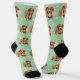 Show your love for your puppy dog or cat with these fun and cozy custom-printed socks! Our premium crew socks feature a pattern of your favourite pet photo along with small white paw prints. Create your own by simply adding your picture to the round placeholder image. Makes a great gift idea and stocking stuffer! Photo tip: crop your photo to a square shape prior to upload so it is centred within the round space. The mint green background colour can be modified.