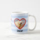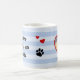 Upload a photo to personalise this blue stripes mug for your dog - one with the pet's face in the middle works best, or you can click on the "Customize" button to adjust it. Then edit the text in the template boxes as required, to add a name or date or other text. Celebrate your dog while he is alive; remember him with love after he has passed away. "Dogs leave paw prints on our hearts".