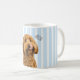 Start your day with your favorite furry friend by your side. This personalized dog photo mug features your pet’s photo and custom name on a soft blue striped background for a clean, timeless look.