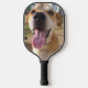 Get your game on with this Custom Dog Photo Personalized Pickleball Paddle. Choose your very own favourite pet photo for the template. Name is in trendy black hand lettered script across the lower centre on both sides of the paddle. This modern design was created with a personal family pet picture. Makes a perfect gift idea for a dog lover!