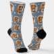 Show your love for your puppy dog or cat with these fun and cozy custom-printed socks! Our premium crew socks feature a pattern of your favourite pet photo along with small white paw prints. Create your own by simply adding your picture to the round placeholder image. Makes a great gift idea and stocking stuffer! Photo tip: crop your photo to a square shape prior to upload so it is centred within the round space. The slate grey blue background colour can be modified.