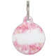 Keep your furry friend stylish and safe with this customizable large round dog tag featuring delicate pink watercolor floral artwork. Perfect for dogs or cats, the tag has a clean white space in the centre for your pet’s name, and an optional field for your contact info.