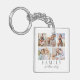 This simple and elegant boho-inspired keychain is a perfect way to celebrate family. The design features a space for five photos, with "Family" displayed underneath in a classic serif font. In soft script, there's room to add the family name, the first names of family members, or even a special message like a meaningful date or phrase—making it a great gift for family reunions, holidays, or everyday keepsakes. The clean white background and soft grey text give it a timeless and refined feel. Fully customizable, you can adjust the text, fonts, colours, and photos to create a personal and meaningful gift.