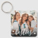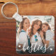 Create a custom keepsake with this personalized family or kids photo keychain, now featuring a sweet new design on the front. The layout includes space for one favourite photo with the word "besties" written across the bottom in a flowing script font, accented by a few small heart details. A subtle black gradient sits behind the text to help it stand out without overpowering the image.