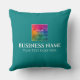 Personalized Front & Back Print Company Logo Design Promotional Add Upload Company Logo Personalized Template Custom Double Sided Print Company Logo Teal Blue Green Square Throw Pillow.