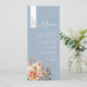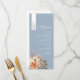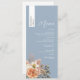 Elevate your reception with this personalized wedding menu, featuring elegant dusty blue background, soft peach watercolor florals, and a guest name printed on a vertical strip—perfect for combining a menu with a place card. Ideal for spring, summer, boho, or rustic weddings, this custom menu brings a polished, coordinated touch to your table settings. Matches beautifully with the full Dusty Blue and Peach Floral Wedding Suite.