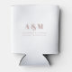 Custom Dusty Rose Text White Can Cooler. Simple. Date, place. Contact designer for custom colours.
