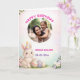 This charming watercolor card features a cute Easter bunny with a party hat and colorful eggs, perfectly blending a birthday celebration with Easter themes. You can easily personalize it with a child’s photo (or two!) within the elegant circular frame, plus add their name and birthdate for a unique and memorable keepsake. Great for springtime birthdays! This is a physical card.