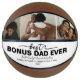 Create a sweet gift for a beloved stepdad this father's Day or dad's birthday, or at the holidays with this three photo collage basketball. "Best bonus dad ever" appears in the centre in soft blue lettering, with your custom message and children's names overlaid.