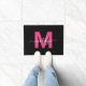 Create Your Own Custom Elegant Black Hot Pink Monogram Script Name Doormat. This stylish and feminine doormat brings a warm, welcoming touch to any entryway, featuring a charming monogram design on a black background with a bold hot pink initial letter and a flowing white script name for a beautifully personalized look. Ideal for new homeowners, newlyweds, or anyone looking to add a touch of personality to their space, this girly black and magenta monogrammed doormat is the perfect gift for housewarming parties, Christmas, or any special occasion. Whether it’s for a sorority house, college dorm room, apartment, bedroom, or family home, this doormat blends elegance with a hint of fun, creating a chic statement piece that’s as practical as it is pretty. Perfect for showcasing your style right at the front door!