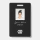 Easily personalize this Custom Employee Name Badge with Photo, Scan Bar Code and business logo. An elegant and simple business design in black and white colours fully customizable in front and back sizes, stylish calligraphy script font and classic Garamond serif font for a professional and sophisticated look. Avaiable with lanyard, metal clip or with retractable. No minimum order.