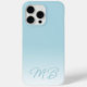 Contemporary light aqua teal seafoam ocean blue coloured monogram cellphone case. With room to customize with a name monogram or initials of your choice. Beautiful, modern, and stylish cover for the trend-savvy and art-loving hip trendsetter who enjoys a simple yet classy and artsy motif style lover who wants to protect their phone from dust and dirt, wear and tear. This design is available in Apple iPhone 6, 7, and 8 Plus, 10 or X, XR, XS, 11, 12, 13 Mini, 14, 15 Plus, and Pro Max cellphone cases. Show off your style, look fashionable, and feel stylish with a unique design on a mobile device accessory of your choice.