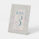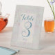 Custom unique elegant modern table number Pedestal Sign sophisticated subtly and gently design on soft blue and pink background with blue text with copper splashed textural accents frame . The text can be modified according to your needs.