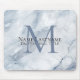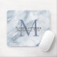 Custom Elegant Monogram Light Blue Marble Mouse Pad