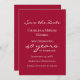 Customize this modern, stylish ruby red wedding anniversary save the date invitation. This 40th wedding anniversary party invitation template is ready for you to add the couple's names and wedding anniversary party date, venue location and details, and other information as needed. All the text is editable. There is also additional text template on the back side if needed. This simple sophisticated pink red card has simple, elegant white script saying "celebrating 40 years" which can be edited to any number for another anniversary year. Personalize this anniversary save the date card for a wonderful wedding anniversary party.