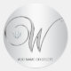 Custom Elegant Silver Monogrammed Initial W Letter Classic Round Sticker