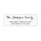 Create your own custom, personalized, simple, elegant, stylish, modern plain white family name return address label. Simply enter your name / family name / company name, and address. Perfect for both, home and business, personal and official mailings. Elegant return address labels for use on birthday, wedding, marriage anniversary, graduation, bridal shower, baby shower, holidays, christmas, or any other special occasion related mailings of the family.