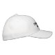 Fits well due to elastic edging, not adjustable. Good qualty material. Good quality embroidering. Subtle lettering (white on beige) just as my wife likes.