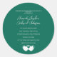 Customize these classic round stickers with your desired name, date, or message. Great for weddings and other occasions. Colour shown is emerald green. Use the template to create your own wedding stickers.