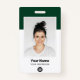 Easily personalize this Custom Employee Name Badge with Photo, Scan Qr Bar Code and business logo. A simple business design in elegant stylish dark green and white colours fully customizable in front and back sizes, sans-serif basic and modern fonts and a professional and clear look. Avaiable with lanyard, metal clip or with retractable. No minimum order.