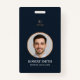 A professional and fully customizable Employee ID Badge template. Upload your own photo, name, job title, and employee ID number. The design includes a realistic barcode for authenticity, with editable text fields for company details. Perfect for businesses, organizations, schools, and events needing clean and modern ID cards.