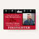 Firefighter Custom Name Logo ID Card Badge for Fire Departments, fire fighters, other workers, jobs, professionals and businesses. Replace the photograph and information with yours for each person. Also replace the fire hat that is on the card for your logo or image that is appropriate.
