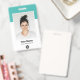 Easily personalize this Custom Employee Name Badge with Photo, Scan Bar Code and business logo. A simple business design in turquoise light vibrant blue and white colours fully customizable in front and back sizes, sans-serif basic and modern fonts and a professional and clear look. Avaiable with lanyard, metal clip or with retractable. No minimum order.