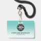 A modern teal business design name badge that hightlights your business logo and employees name. Option to include extra company info and a scan barcode on the back if required. This design would be perfect for any business or company and the background can be changed to any colour.