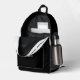 Easily personalize this professional backpack adding your company logo and a custom text. You can add business name, slogan, social media, website or any additional info, or delete it. A simple and modern design in black and white featuring clear sans serif font, for a professional and edgy look, perfect as promotional gift for employee, customers, corporate celebrations, tradeshow. The backpack can be customized in any colour and any font. No minimum.