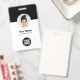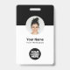 Easily personalize this Custom Business Minimalist Employee Name Badge with Photo, Scan Qr Code or Scan Bar Code and business logo. A simple business design with round photo, in modern black and white colours fully customizable in front and back sizes, sans-serif basic and modern fonts and a professional and clear look. Avaiable with lanyard, metal clip or with retractable. No minimum order.
