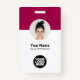 Easily personalize this Custom Business Minimalist Employee Name Badge with Photo, Scan Qr Code or Scan Bar Code and business logo. A simple business design with round photo, in cherry red and white colours fully customizable in front and back sizes, sans-serif basic and modern fonts and a professional and clear look. Avaiable with lanyard, metal clip or with retractable. No minimum order.