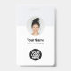Easily personalize this Custom Business Minimalist Employee Name Badge with Photo, Scan Qr Code or Scan Bar Code and business logo. A simple business design with round photo, in light grey and white colours fully customizable in front and back sizes, sans-serif basic and modern fonts and a professional and clear look. Avaiable with lanyard, metal clip or with retractable. No minimum order.