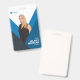 Personalize this modern employee name badge with your company logo, employee photo, name, ID number, or other custom text. This badge is available with a metal clip, lanyard, or a retractable reel. The design is easily customizable for your business. You can change the colours, fonts and optionally add content to the back like a barcode or return information. No minimum order quantity and no set up fee.