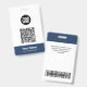 Easily personalize this Custom Administrative professional Name Badge without photo, featuring an easy copy and paste qr code template, Scan Bar Code and large business logo. A simple business design in navy blue and white colours fully customizable in front and back sizes, sans-serif basic and modern fonts and a professional and clear look, perfect for small business employee, boss, guests. These business id badges supplies are avaiable with lanyard, metal clip or with retractable. No minimum order, but save money and enjoy Zazzle discounts by multiple orders!