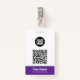 Easily personalize this Custom Administrative professional Name Badge without photo, featuring an easy copy and paste qr code template, Scan Bar Code and large business logo. A simple business design in purple and white colours fully customizable in front and back sizes, sans-serif basic and modern fonts and a professional and clear look, perfect for small business employee, boss, guests. These business id badges supplies are avaiable with lanyard, metal clip or with retractable. No minimum order, but save money and enjoy Zazzle discounts by multiple orders!