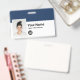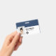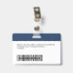 Easily personalize this Custom Employee Name Badge with Photo, Scan Bar Code and business logo, with metal clip included. A simple business design left-aligned in navy blue and white colours fully customizable in front and back sizes, sans-serif basic and modern fonts and a professional and clear look. Avaiable with or without lanyard, metal clip or with retractable. No minimum order.