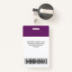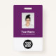Easily personalize this Violet Custom Employee Name Badge with Photo, Scan Bar Code and business logo. A simple business design in violet and white standard colours fully customizable in front and back sizes, sans-serif basic and modern fonts and a professional and clear look. Avaiable with lanyard, metal clip or with retractable. No minimum order.