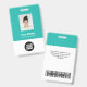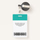 Easily personalize this Light Blue Turquoise Custom Employee Name Badge with Photo, Scan Bar Code and business logo. A simple business design in fresh teal turquoise and white standard colours fully customizable in front and back sizes, sans-serif basic and modern fonts and a professional and clear look. Avaiable with lanyard, metal clip or with retractable. No minimum order.