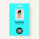 Easily personalize this Custom Employee Name Badge with Photo, Scan Bar Code and business logo. A simple business design in playful bright vibrant light blue and white colours fully customizable in front and back sizes, sans-serif basic and modern fonts and a professional and clear look. Avaiable with lanyard, metal clip or with retractable. No minimum order.