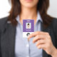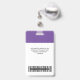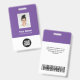 Easily personalize this Purple Custom Employee Name Badge with Photo, Scan Bar Code and business logo. A simple business design in dark purple and white standard colours fully customizable in front and back sizes, sans-serif basic and modern fonts and a professional and clear look. Avaiable with lanyard, metal clip or with retractable. No minimum order.
