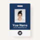 Easily personalize this Custom Employee Name Badge with Photo, Scan Bar Code and business logo. A simple business design in navy blue and white colors fully customizable in front and back sizes, sans-serif basic and modern fonts and a professional and clear look. Avaiable with lanyard, metal clip or with retractable. No minimum order.