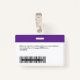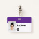 Easily personalize this Custom Employee Name Badge with Photo, Scan Bar Code and business logo, with metal clip included. A simple business design left-aligned in deep purple and white colours fully customizable in front and back sizes, sans-serif basic and modern fonts and a professional and clear look. Avaiable with or without lanyard, metal clip or with retractable. No minimum order.