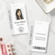 Give your brand a modern edge with this custom grey business professional photo ID badge, designed for corporate offices, security teams, and executive staff. This sophisticated vertical badge features a neutral light gray sidebar that adds a clean, high-end look to your daily work uniform. The template is exceptionally easy to customize with a professional headshot, company logo, and staff details. For added security and practicality, the reverse side includes your vertical company name, a "return if found" address section, and a scannable barcode. It is a durable and stylish solution for maintaining identification and access control in any professional environment.