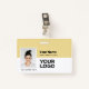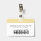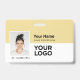 Easily personalize this Custom Horizontal Employee ID company Name Badge with Photo, Scan Bar Code or Qr code and business logo. A simple and clean business design in modern pastel yellow butter cream and white colors fully customizable in front and back sizes, sans-serif basic and modern fonts and a professional and clear look. These standard security id name tags badges are avaiable with lanyard, metal clip or with retractable. You can personalize your id badge cards choosing any background color and any font style with Graphic Design editor by clicking on customize further. No minimum order.
