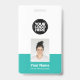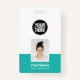 Easily personalize this Custom Employee Name Badge with Photo, Scan Bar Code and large business logo. A simple business design in turquoise light blue and white colours fully customizable in front and back sizes, sans-serif basic and modern fonts and a professional and clear look. Avaiable with lanyard, metal clip or with retractable. No minimum order.