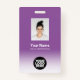 Easily personalize this Custom Employee Name Badge with Photo, Scan Bar Code and business logo featuring a white ombre gradient on orchid violet background colour. A simple business design in cool purple and white colours fully customizable in front and back sizes, sans-serif basic and modern fonts and a professional and clear look. Avaiable with lanyard, metal clip or with retractable. No minimum order.