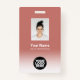 Easily personalize this Custom Employee Name Badge with Photo, Scan Bar Code and business logo featuring a white ombre gradient on terracotta light brown background colour. A simple business design in cool purple and white colours fully customizable in front and back sizes, sans-serif basic and modern fonts and a professional and clear look. Avaiable with lanyard, metal clip or with retractable. No minimum order.