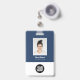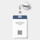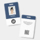 Easily personalize this Custom Employee Name Badge with Photo, Qr Code and business logo. A simple business design in navy blue and white colours fully customizable in front and back sizes, sans-serif basic and modern fonts and a professional and clear look. Avaiable with lanyard, metal clip or with retractable. No minimum order.