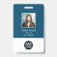 Customize this corporate and small business employee photo ID name badge replaceable scan barcode and business or brand logo.