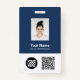 Easily personalize this Custom Employee Name Badge with Photo, Scan QrCode and Bar Code and business logo. A simple business design in navy blue and white colours fully customizable in front and back sizes, sans-serif basic and modern fonts and a professional and clear look. Avaiable with lanyard, metal clip or with retractable. No minimum order.